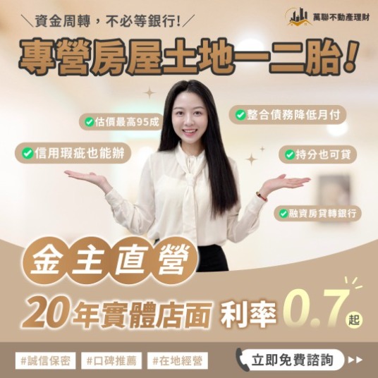當然你也可以在被銀行拒絕之後來找萬聯不動產理財,透明收費標準超安心!