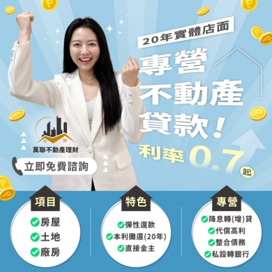 審核條件:信用、財力不限;屋齡、屋況不限;剛貸過也可辦理。